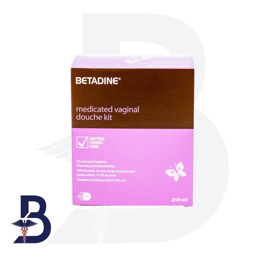 BETADINE VAGINAL CLEANSING (KIT) 250ML BETADINE Vaginal Douche is used as a vaginal cleanser for the treatment of vaginitis (inflammation of the vagina) due to candidal, trichomonal, non-specific, or mixed infections and for pre-operative disinfection of