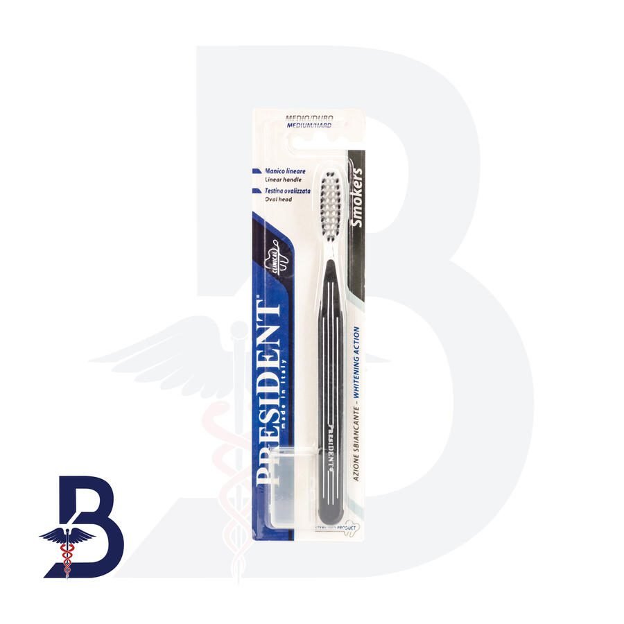 PRESIDENT WHITE TOOTHBRUSH SMOKERS The oval head allows the toothbrush to follow the dental arch without the delicate gingival tissue. The special structure of the whitening filament